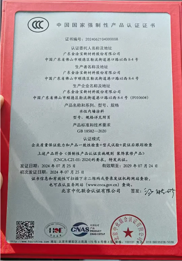 金涂寶--華喆榮獲國家3C認(rèn)證,不僅是對(duì)公司產(chǎn)品質(zhì)量和安全管理能力的肯定,更是對(duì)公司品牌實(shí)力和市場競爭力的提升。這將進(jìn)一步增強(qiáng)消費(fèi)者對(duì)華喆漆產(chǎn)品的信任度和滿意度,推動(dòng)公司在涂料行業(yè)中的持續(xù)發(fā)展和壯大。