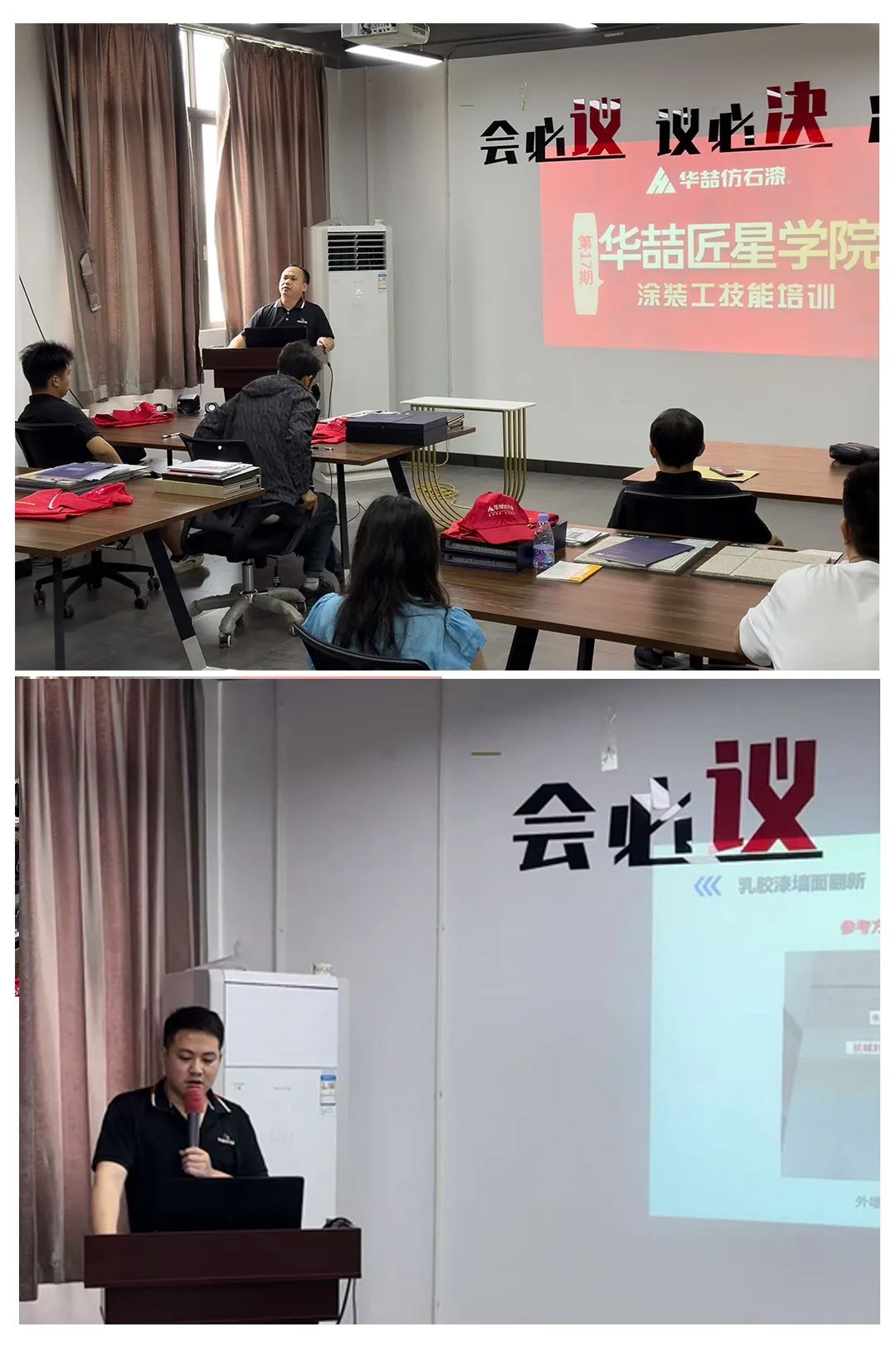 在四月芳菲漸隱,清淺初夏的美好日子里。華喆仿石漆匠星學(xué)院第十七期培訓(xùn)班如期而至,開啟了一段充滿活力與激情的涂裝培訓(xùn)旅程。在晨曦的照耀下,本期學(xué)員身著統(tǒng)一的制服,以昂揚的姿態(tài)迎接挑戰(zhàn)與學(xué)習(xí)。隨著一聲響亮的口號,培訓(xùn)活動在一片熱烈的氣氛中拉開序幕,讓我們共同回顧這段旅程中的精彩時刻。