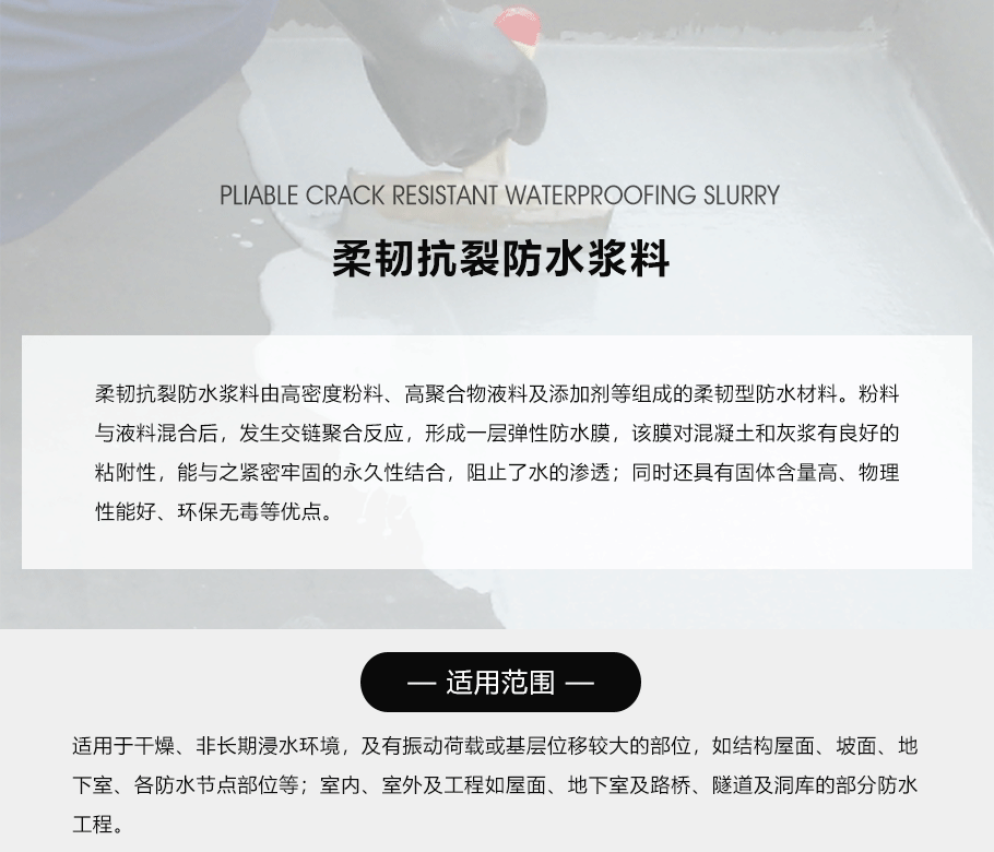 想要了解更多關(guān)于柔韌抗裂防水漿料歡迎咨詢 18022280326(微信同號(hào))