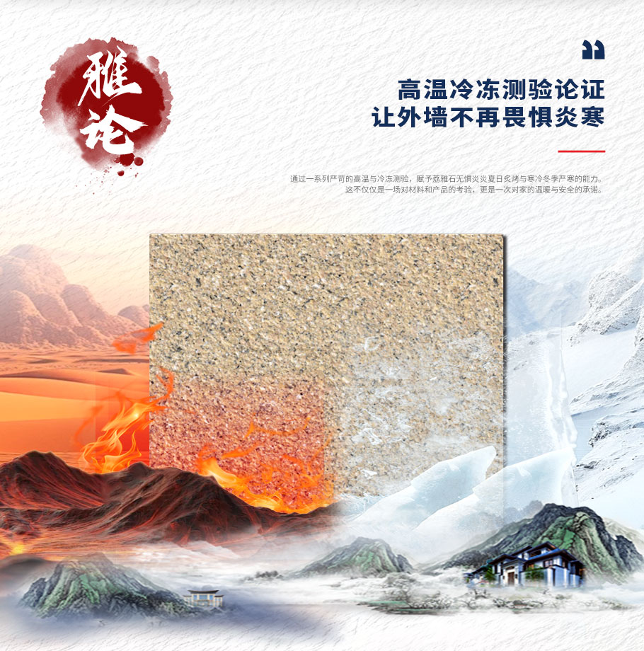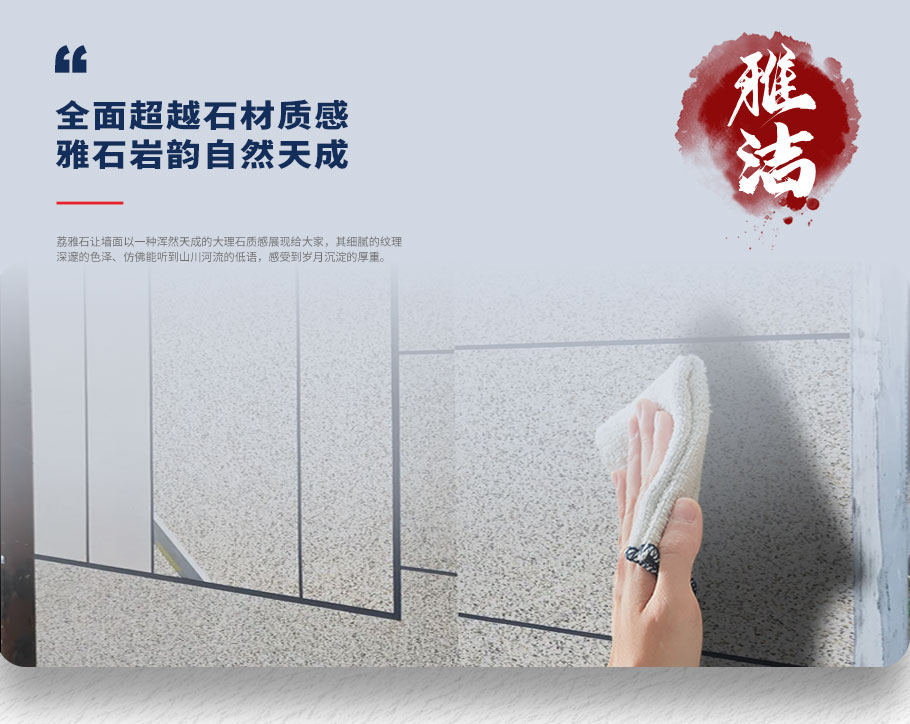 甄選高溫煅燒工藝彩砂搭配高端硅丙乳液,讓每一面墻面都仿佛蘊(yùn)含著大理石的山川韻味。讓家的墻面不僅是視覺上的享受,讓人凝視間油然而生對外墻大理石之美的贊嘆;更讓墻面似經(jīng)過歲月的雕琢,每一處紋理都是自然賦予的靈魂饋贈。讓家不再單調(diào),賦予生機(jī)與承載溫馨的家庭篇章。